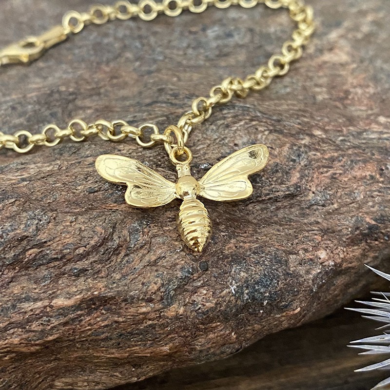 Preciosa pulsera ajustable tipo rolo en plata chapada en oro y colgante abeja de 23×16 mm de plata chapada en oro y largo máximo de 20 cm de largo. Y es bonita para cualquier ocasión , pero como siempre inspirada en el último libro de Diana Gabaldón,  «Cuenta a las abejas que me fuí»…Emocionante!!!. Para cualquier consulta puede escribirme al 658874746.